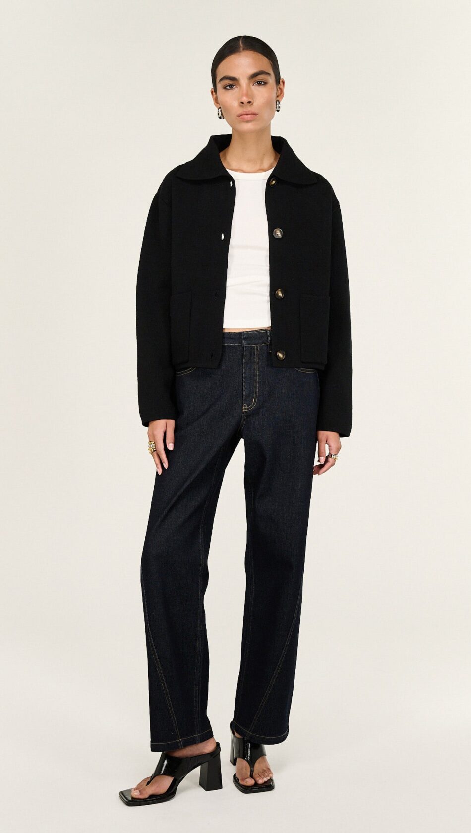 The cropped length and clean lines give it a contemporary finish, making it an effortless piece to throw on over casual and tailored looks alike.